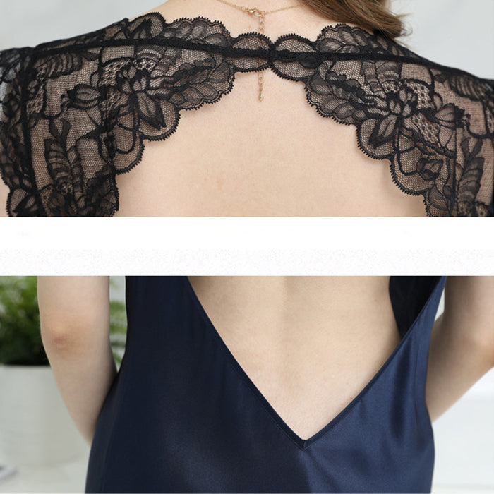 16Momme Pure Mulberry Silk Sexy Above Knee Lace Sleepshirt [SKSH0002]