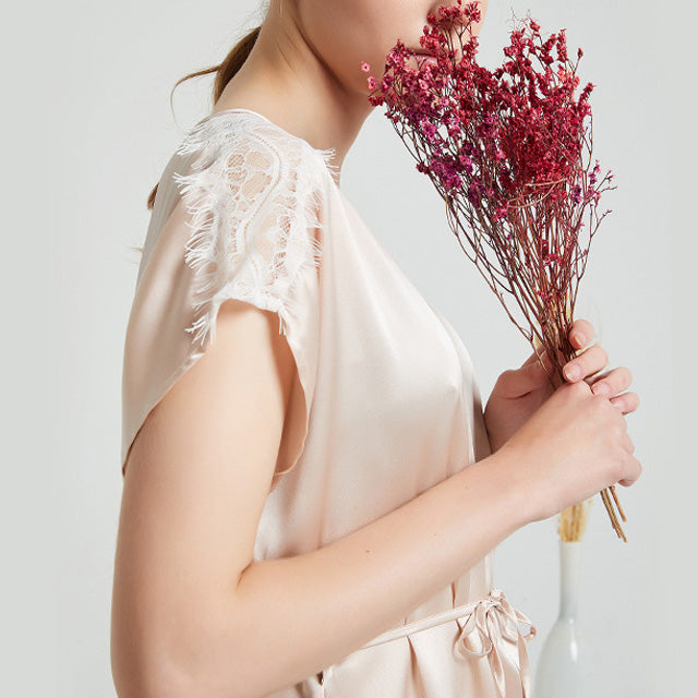 19Momme Pure Mulberry Silk Elegant Mini Belted Sleepshirt [SKSH0008]