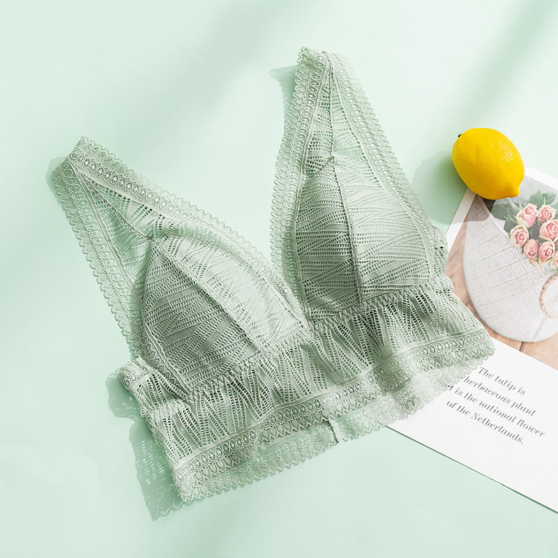 Wireless Romantic Breathable Triangle Lace Mulberry Silk Bras [SKBR0059]