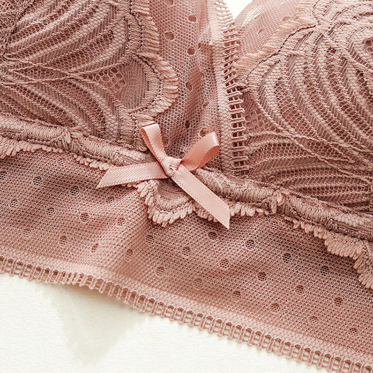 Wireless Romantic Gathered 3/4 Cup Lace Mulberry Silk Bras [SKBR0040]