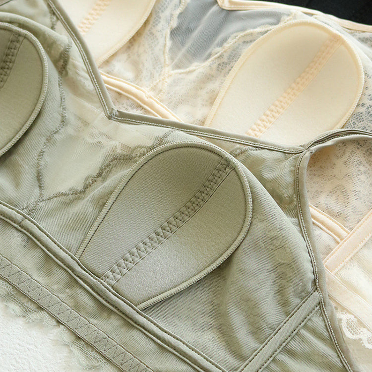 Wireless Sexy Gathered Tube Top Lace Mulberry Silk Bras [SKBR0070]
